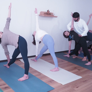 また、1人では難しいアーサナもアジャストメントや壁を使ったりして、